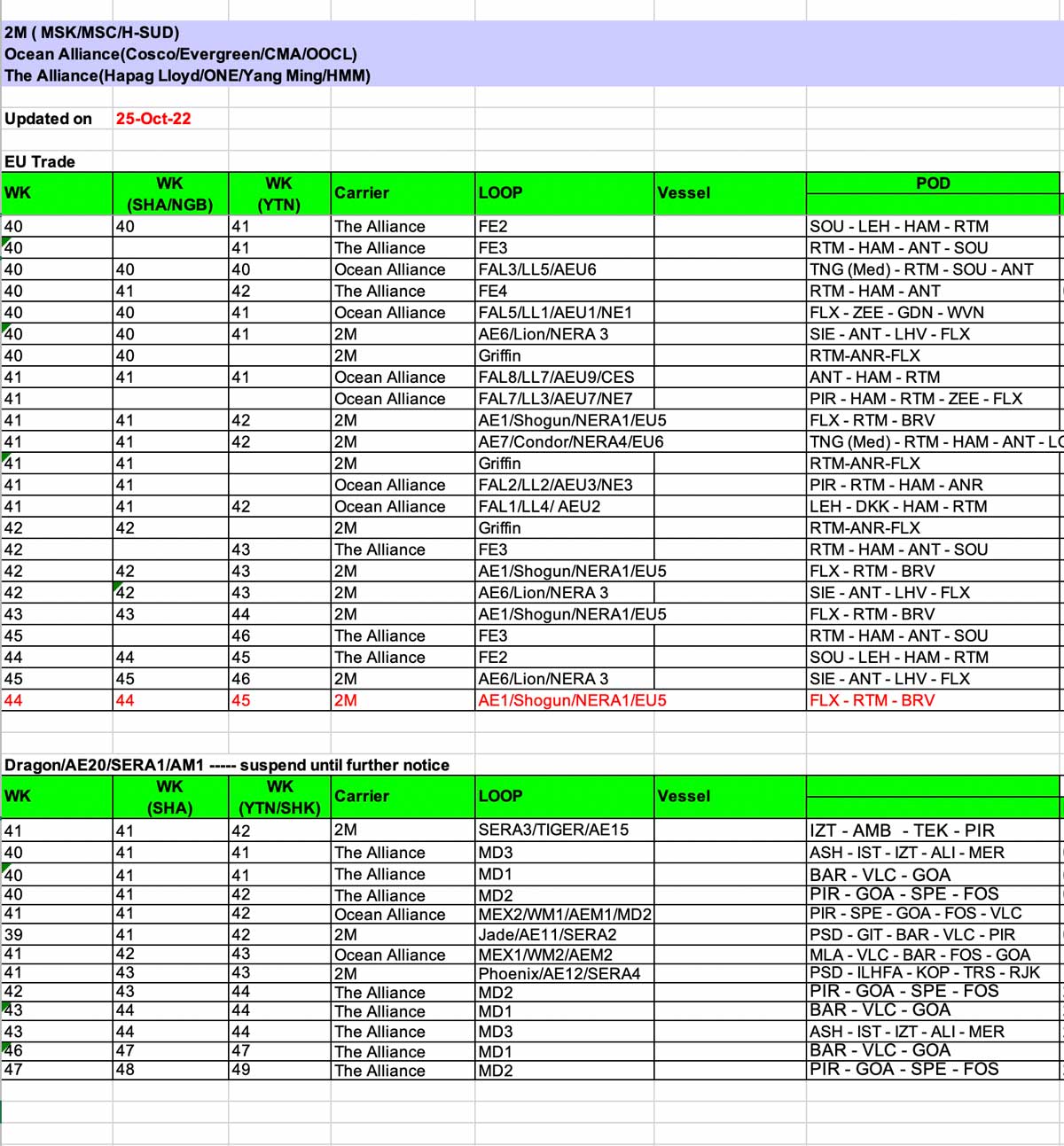 “We think they [the container shipping lines] need to do much more, and rather quickly, to stabilise freight rates ahead of upcoming contract negotiations for the Asia-Europe route, which typically take place during November and December.” (HSBC Bank)